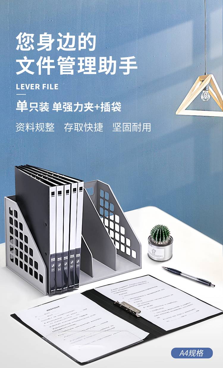 得力(deli)A4金属单强力夹 插页袋硬文件夹 大容量试卷资料夹诗朗诵签约夹板 文件收纳办公用品5301蓝色1只