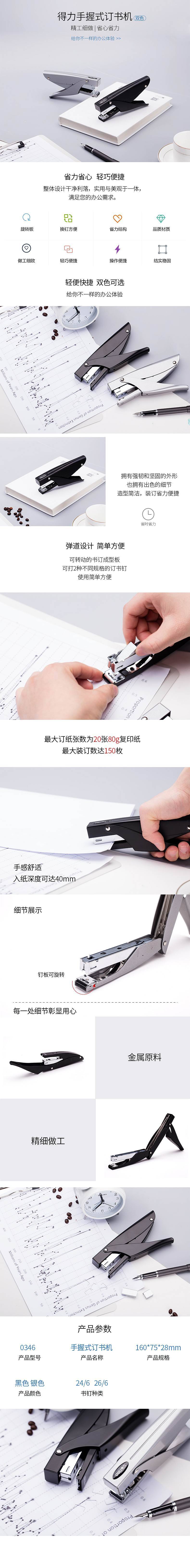 得力(deli)0346 12#手握式订书机(单位:台)黑